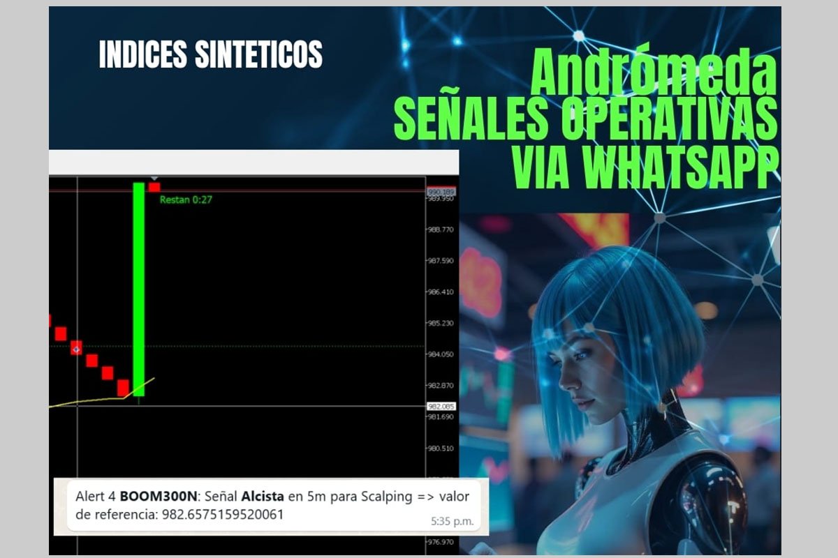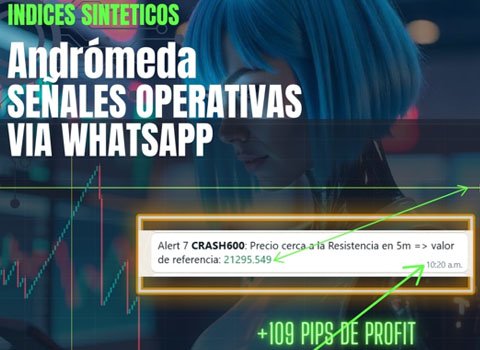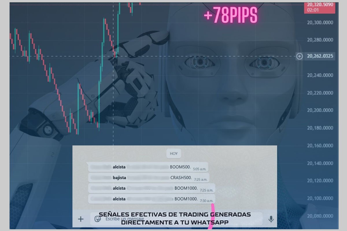 Nuestras señales están diseñadas para índices sintéticos de Deriv y te llegan directamente a WhatsApp, listas para que las ejecutes en tu cuenta de MetaTrader 5 (MT5).